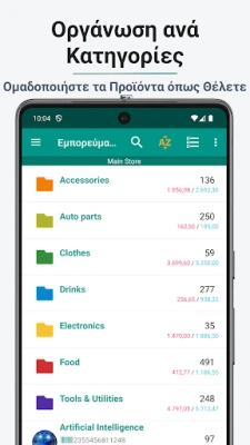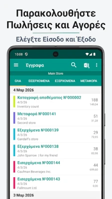 Διαχειριστείτε το απόθεμά σας με ευκολία και ακρίβεια. Η εφαρμογή παρέχει ένα απλό και αποτελεσματικό σύστημα για την παρακολούθηση οποιουδήποτε τύπου προϊόντων. Οργανώστε την αποθήκη σας και βελτιστοποιήστε τη διαχείριση αποθεμάτων.