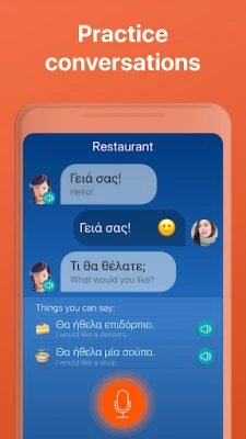 Με κρυστάλλινο ήχο από επαγγελματίες εκφωνητές, το Mondly σας μαθαίνει τη σωστή ελληνική προφορά από την πηγή. Η προηγμένη αναγνώριση ομιλίας λειτουργεί ως ο προσωπικός σας δάσκαλος, προσφέροντας ανατροφοδότηση μόνο όταν μιλάτε καθαρά και σωστά, βελτιώνοντας δραματικά την εκφορά σας. Αντί για απομονωμένες λέξεις, το Mondly εστιάζει σε χρήσιμες φράσεις για πραγματικές καταστάσεις, οργανωμένες σε θεματικές ενότητες μικρού μεγέθους. Θέλετε να κατανοήσετε την ελληνική γραμματική; Με ένα απλό άγγιγμα σε ένα ρήμα, βλέπετε την πλήρη κλίση του, μαζί με τη μετάφραση – πιο γρήγορα και αποτελεσματικά από οποιοδήποτε λεξικό. Παρακολουθήστε την πρόοδό σας με έξυπνα στατιστικά στοιχεία και διασκεδάστε με στοιχεία παιχνιδιού: ανταγωνιστείτε με φίλους και άλλους χρήστες στην παγκόσμια κατάταξη του Mondly, ή βελτιωθείτε με το εβδομαδιαίο κουίζ. Το πιο εντυπωσιακό; Το Mondly προσαρμόζεται στον δικό σας ρυθμό και στυλ μάθησης, καθιστώντας το τον εξατομικευμένο σας οδηγό, ακόμα και για αρχάριους. Σε σύντομο χρονικό διάστημα, θα έχετε κατακτήσει τις 5000 πιο χρήσιμες λέξεις και φράσεις, ανοίγοντας διάπλατα τον δρόμο για την ελληνική γλώσσα, με τρόπο που θα λατρέψουν ακόμα και τα παιδιά.
