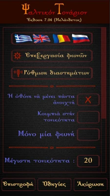 Η εφαρμογή παρέχει εξαιρετική ευελιξία, επιτρέποντάς σας να επεξεργαστείτε την τονικότητα κάθε νότας ξεχωριστά, καθώς και να επιλέξετε βήματα αλλαγής τονικότητας (μορίου ή πολλαπλών). Με τη δυνατότητα ισοστάθμισης χαμηλών και υψηλών συχνοτήτων, καθώς και την προσαρμογή μέγιστης και ελάχιστης τονικότητας, μπορείτε να διαμορφώσετε τον ήχο ακριβώς όπως τον φαντάζεστε. Η ευκολία χρήσης είναι πρωταρχικής σημασίας: δεν απαιτείται ξεχωριστό κουμπί διακοπής της φωνής, καθώς η συμπεριφορά προσαρμόζεται ανάλογα με τη λειτουργία. Ως τονoδότης, η φωνή σταματά μόλις αφήσετε το πλήκτρο, ενώ ως ισοκράτης, παύει με ένα δεύτερο πάτημα στην ίδια νότα. Επιπλέον, στην κατάσταση ισοκράτη, έχετε τη δυνατότητα να εμφανίσετε μόνο τις χρήσιμες νότες με μεγαλύτερα κουμπιά για ακόμα πιο εύκολο χειρισμό, ή ολόκληρη την κλίμακα. Αξιοποιήστε επίσης την ενσωματωμένη προβολή μουσικών αρχείων PDF, επιτρέποντας την ταυτόχρονη χρήση του ισοκράτη με την ανάγνωση των σημειώσεων. Το "Ψαλτικόν Τονάριον" είναι ένα ανεκτίμητο εργαλείο που ενδυναμώνει κάθε ψάλτη και σπουδαστή, προσφέροντας ένα πλήρες φάσμα εργαλείων για την εξέλιξη και την τελειοποίηση της εκκλησιαστικής μουσικής τέχνης σας.