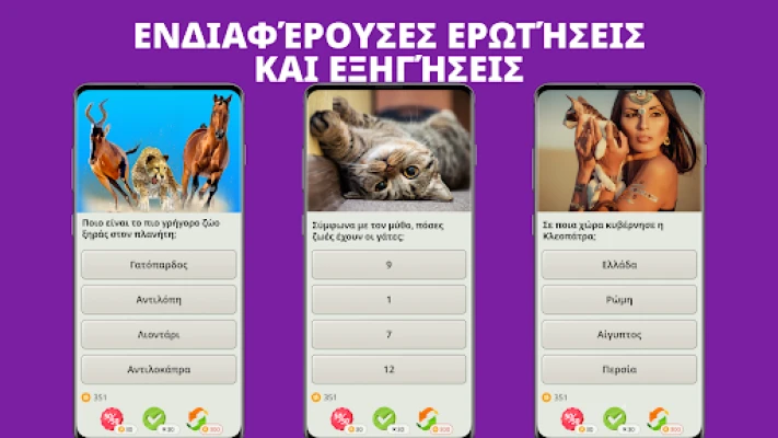 Φανταστείτε έναν κόσμο όπου η μάθηση είναι μια περιπέτεια και κάθε ερώτηση ανοίγει νέους ορίζοντες. Το QuizzLand μετατρέπει την περιέργειά σας σε μια συναρπαστική αναζήτηση, προκαλώντας τη διάνοιά σας με ένα τεράστιο φάσμα ενδιαφερουσών ερωτήσεων. Δεν πρόκειται απλώς για ένα ακόμα παιχνίδι γνώσεων· είναι ένα προσωπικό ταξίδι ανακάλυψης, όπου κάθε σωστή απάντηση εμπλουτίζει την κατανόησή σας, συνοδευόμενη από γοητευτικές, λεπτομερείς επεξηγήσεις. Ασκήστε το μυαλό σας με τον δικό σας ρυθμό, χωρίς να περιμένετε άλλους, και βυθιστείτε σε ένα σύμπαν σχεδιασμένο να επεκτείνει τις γνώσεις σας αβίαστα και διασκεδαστικά.