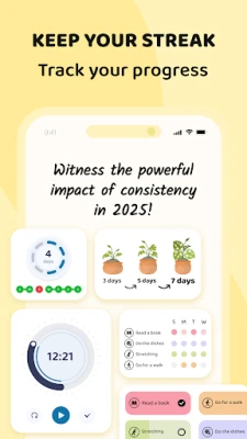 Παρακολουθήστε την πρόοδό σας να ζωντανεύει μπροστά στα μάτια σας, καθώς ένα μικρό φυτό ανθίζει και μεγαλώνει με κάθε ολοκληρωμένη συνήθεια, συμβολίζοντας τη δύναμη της συνέπειάς σας. Όσο μεγαλύτερη είναι η «Σειρά Επιτυχίας» σας, τόσο πιο εντυπωσιακό γίνεται το φυτό σας. Ωστόσο, η διακοπή της συνήθειας έστω και για μία ημέρα έχει τις συνέπειές της: το φυτό μαραίνεται, υπενθυμίζοντάς σας την αξία της αφοσίωσης. Αφήστε αυτή την οπτική ανατροφοδότηση να σας εμπνέει να παραμένετε σταθεροί και να δείτε τους στόχους σας να καρποφορούν.