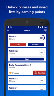 Η εκμάθηση γίνεται παιχνίδι χάρη στις διασκεδαστικές ασκήσεις και τα παιχνίδια λέξεων που προσφέρει η εφαρμογή. Συλλέξτε πόντους με κάθε νέα λέξη που μαθαίνετε και κάθε άσκηση που ολοκληρώνετε, ξεκλειδώνοντας συναρπαστικές νέες φράσεις και λίστες λέξεων που εμπλουτίζουν το λεξιλόγιό σας. Επαναλάβετε με ευκολία τις λέξεις που έχετε ήδη κατακτήσει, εξασφαλίζοντας ότι η γνώση σας παραμένει ζωντανή. Επιπλέον, μπορείτε να επισημάνετε τις αγαπημένες σας λέξεις και να αναλύσετε τα προσωπικά σας στατιστικά, προσαρμόζοντας την εκμάθηση στις δικές σας ανάγκες. Από τους αρχάριους του A1 έως τους προχωρημένους χρήστες του C2, θα βρείτε τις πιο συνηθισμένες και χρήσιμες λέξεις για κάθε επίπεδο, διασφαλίζοντας μια ολοκληρωμένη γλωσσική ανάπτυξη.