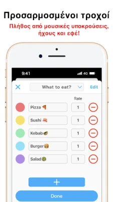 Ξεχάστε όσα γνωρίζατε για τις εφαρμογές ρουλέτας! Εδώ, η απλότητα συναντά την απόλυτη ψυχαγωγία, μεταμορφώνοντας κάθε περιστροφή σε μια συναρπαστική εμπειρία. Λύσαμε όλες τις συνηθισμένες δυσκολίες, εμπλουτίζοντας τη διαδικασία με μια πληθώρα μουσικών επιλογών, εντυπωσιακά ηχητικά εφέ και μοναδικές οπτικές εκπλήξεις που θα ανεβάσουν τη διάθεση. Είτε αναζητάτε έναν απλό τρόπο λήψης αποφάσεων είτε την απόλυτη διασκέδαση για το επόμενο πάρτι, αυτή η εφαρμογή ρουλέτας είναι σχεδιασμένη για να προσφέρει κάτι παραπάνω.