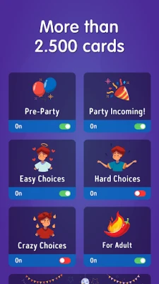 Ιδανικό για πάρτι, μακρινά ταξίδια ή ακόμα και για μια σύντομη νοητική ανάπαυλα κατά τη διάρκεια της ημέρας σας, το παιχνίδι αυτό είναι απαραίτητο για την κινητή σας συσκευή. Είστε λοιπόν έτοιμοι να πάρετε κάποιες δύσκολες αποφάσεις; Θυμηθείτε: στον κόσμο του "Would you Rather", δεν υπάρχουν λάθος απαντήσεις – μόνο αποκαλυπτικές αλήθειες γεμάτες γέλιο. Ενταχθείτε στην κοινότητα, μοιραστείτε τις επιλογές σας και αφήστε τες να λάμψουν! Κατάλληλο για ενήλικες και παιδιά, προσφέρει ατελείωτες ώρες γέλιου και προβληματισμού για όλους.